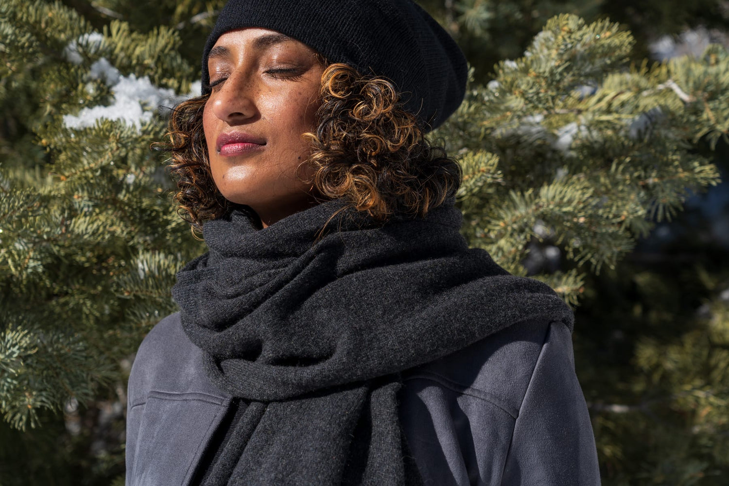 Nº 230: Just what you need to stay cozy on your boldest adventures. The Neck Gaiter is the stay-put scarf in the softest cashmere. What we designed to wear on the slopes. Skiing, snowboarding, biking, or backpacking—elevate your adventure with the finest in performance and luxury.