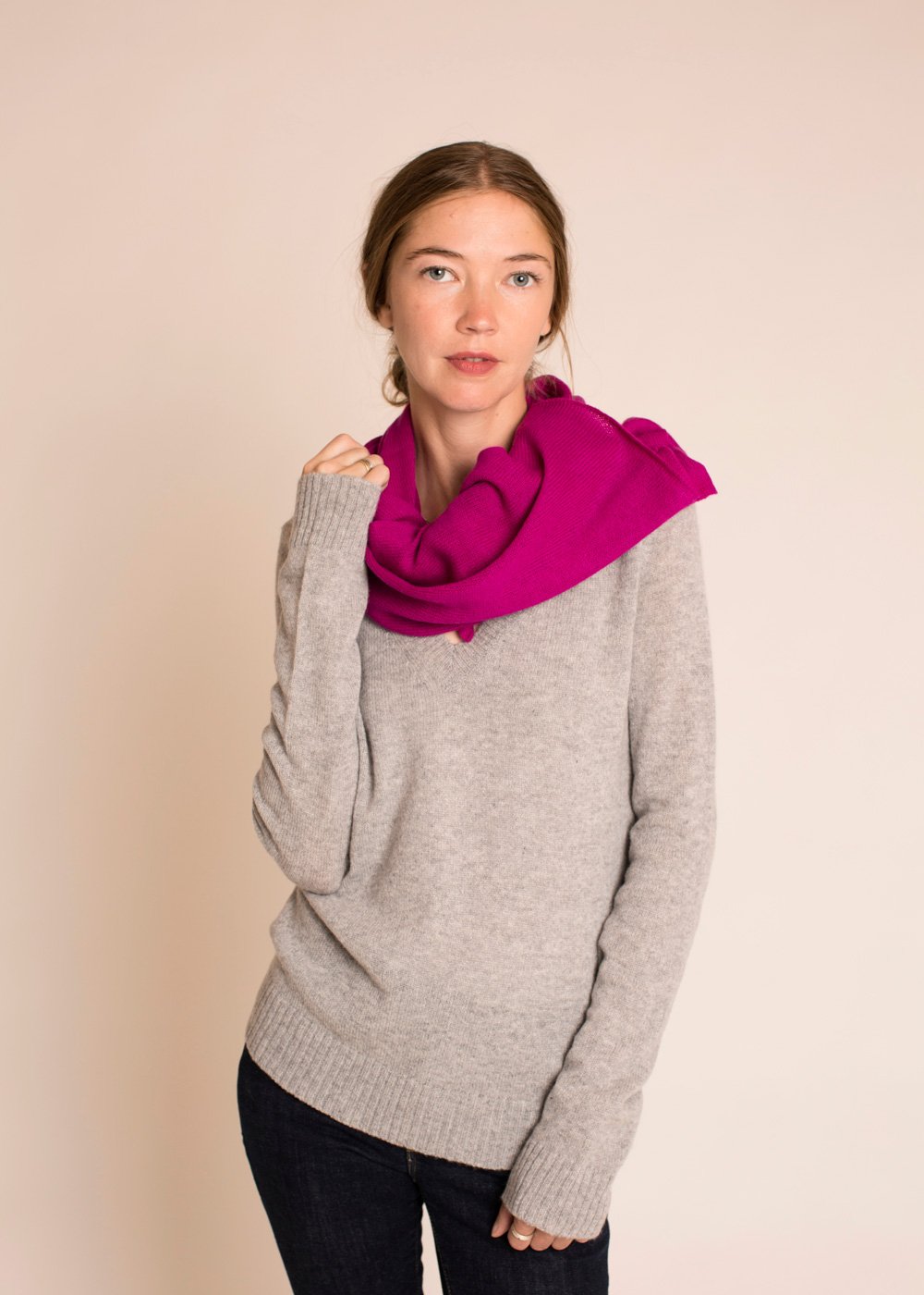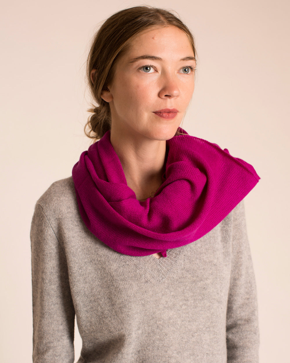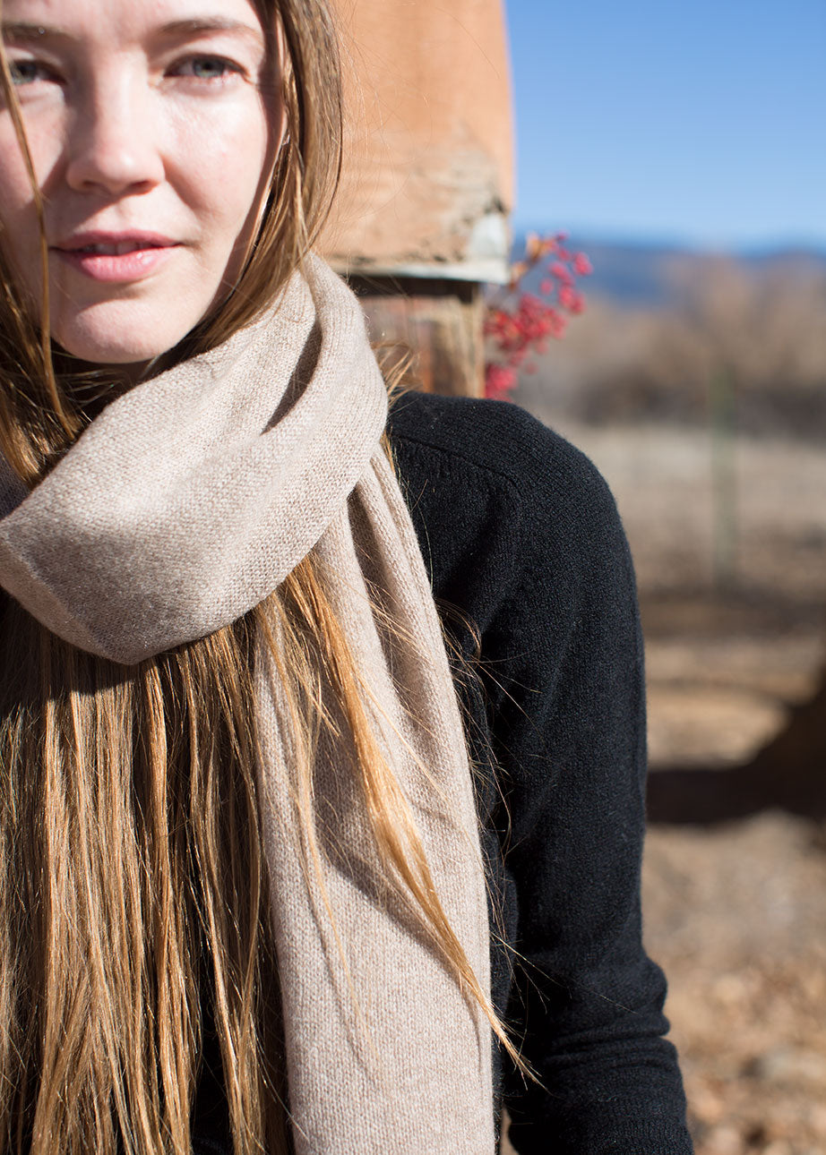 Nº 222: Lighter and sweeter than a dream. Generous in length and width, The Golightly Scarf is a single panel of lush cashmere knit on one side, purl on the other. Our lightest full-length scarf. Let it float around you and wonder how something so lofty could be so warm.