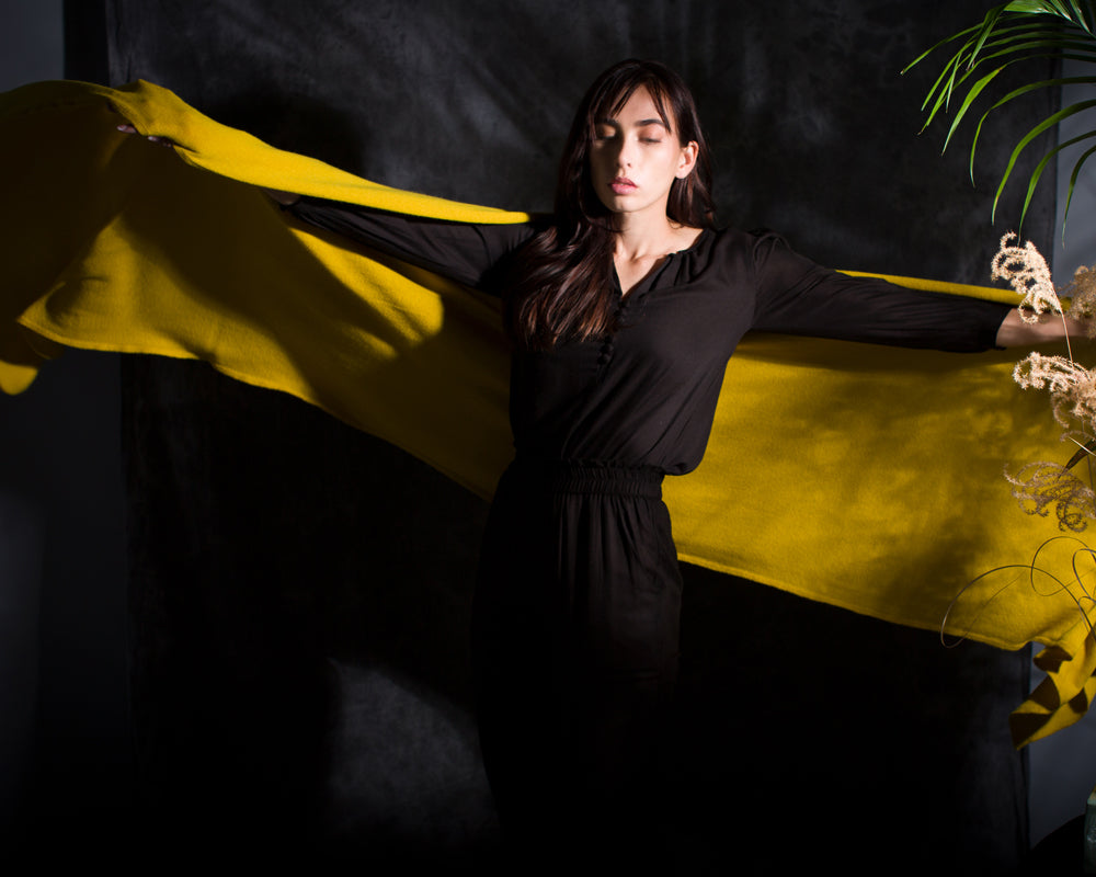 Golightly's new and improved cashmere wrap is a fair definition for Substantial Quality. We are excited to share this upgrade with you as it has delicately ribbed edges to prevent curling. It is wearable as a shawl with its widened dimensions.