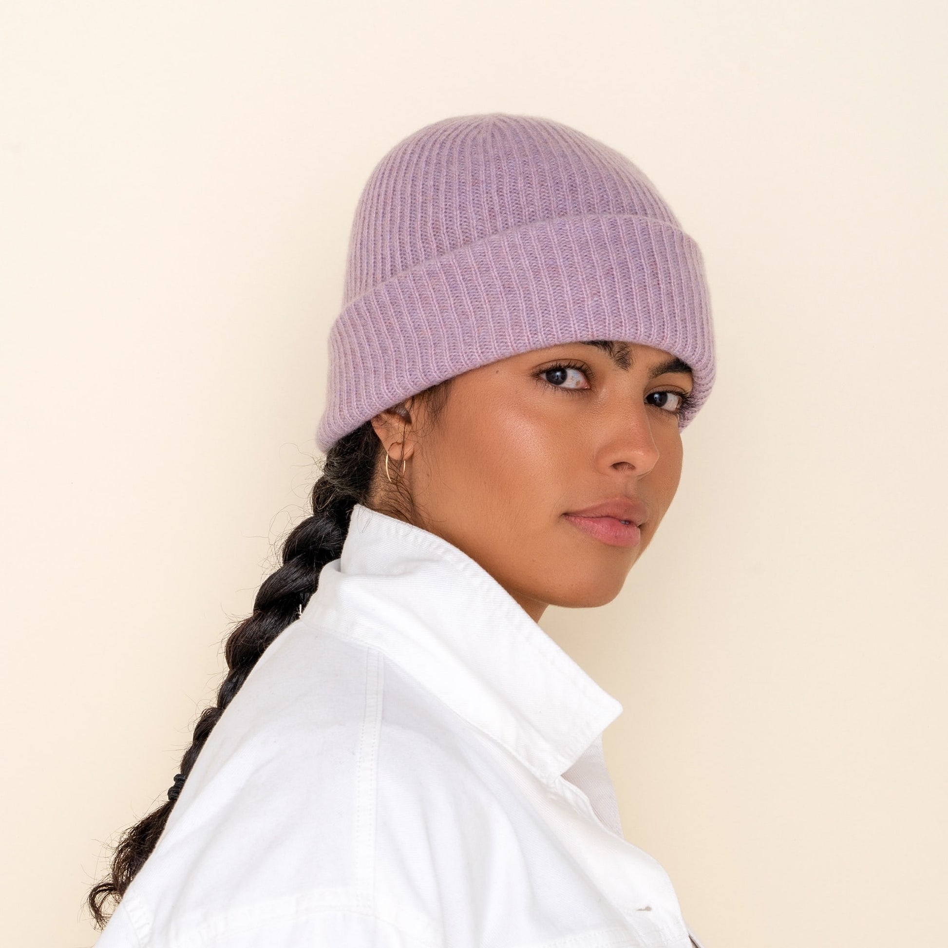 Nº 106: The Ribbed Watchcap is moisture-ready. In a snow storm, it is an insulated, doubly-layered cashmere cocoon. Frozen = warmer. The signature ribbing resists wind and cancels noise. Structured, Soft and Stylish.